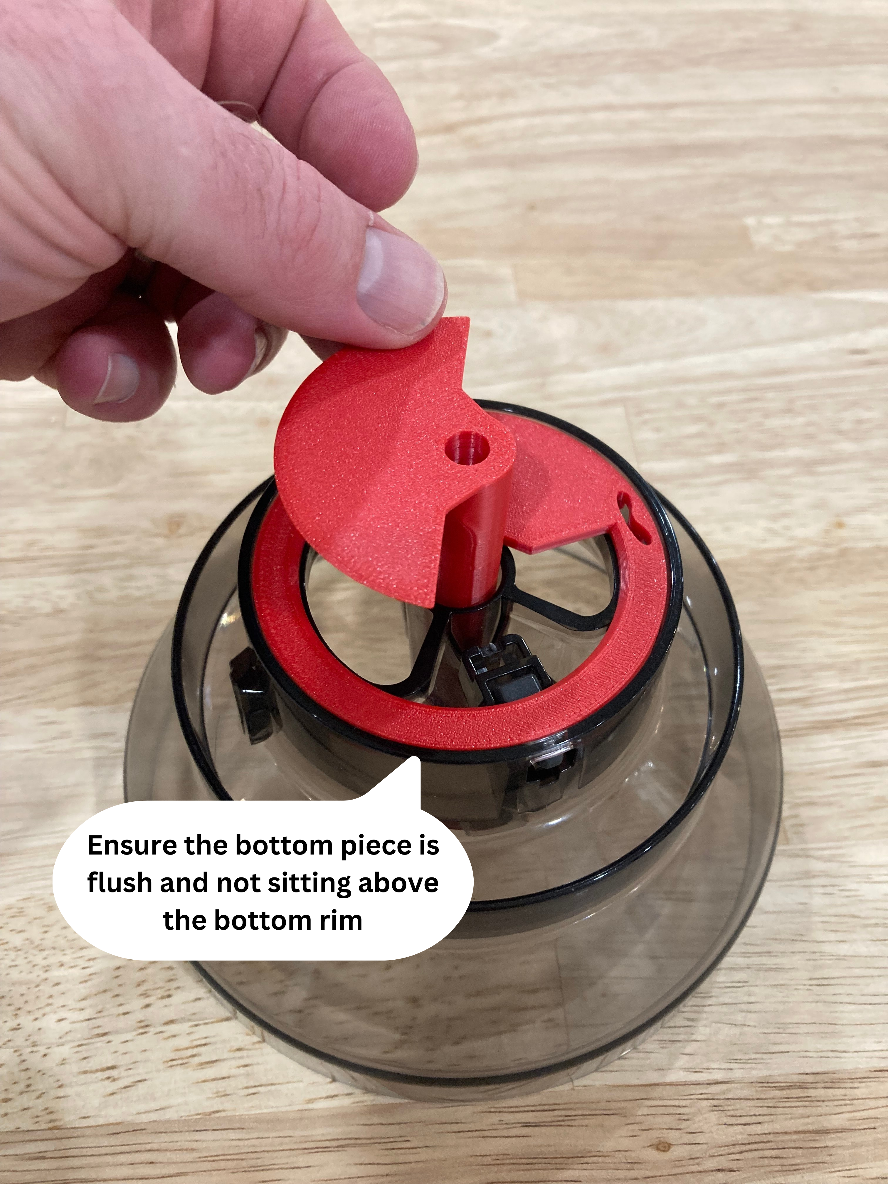 10. With the circular piece all snuggled in, double-check that it's sitting flush and not playing peek-a-boo above the bottom rim of the bin.